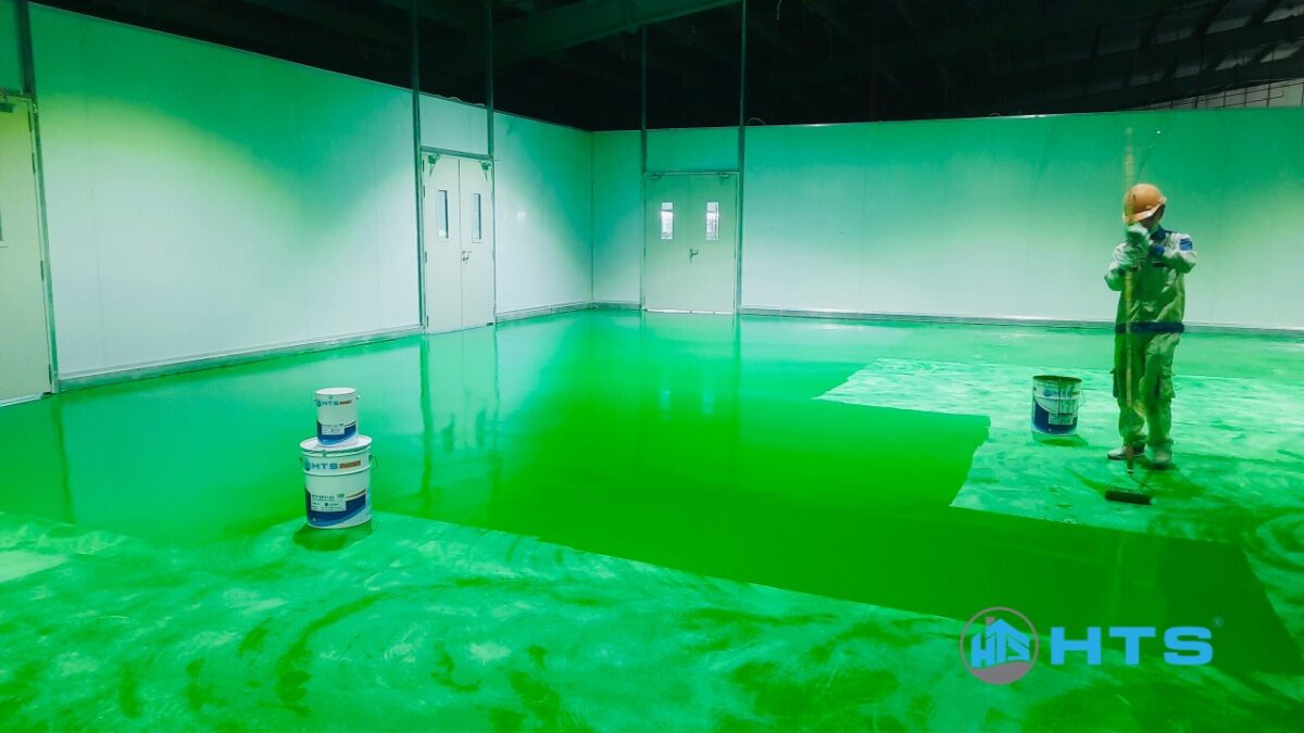 Thi công lớp 02 sơn phủ Epoxy HTS® EP2105. Bảo vệ bề mặt sàn chờ nghiệm thu, bàn giao đưa vào sử dụng (khoảng 5-7 ngày sau thi công).